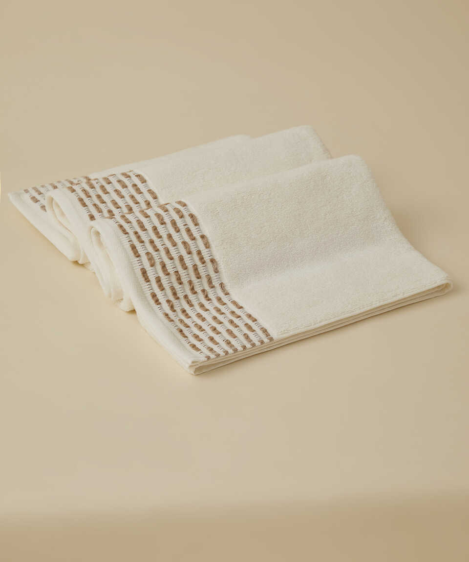 بفضل جودة خيوط Micro Touch التي تم تطويرها بعناية، فإنها تتميز بملمس ناعم للغاية ولا تفقد نعومتها ولونها النابض بالحياة والمشرق حتى بعد الغسيل. ونظرًا لمحتواها من القطن وجودة خيوطها الخاصة، فإنها تتمتع بقدرة امتصاص عالية للماء. لا يوجد تساقط للقطن أثناء الاستخدام. وسوف تتكيف بسهولة مع أي ديكور بتفاصيل حدودها بألوان أنيقة وباستيل. بفضل جودة خيوط Micro Touch التي تم تطويرها بعناية، فإنها تتميز بملمس ناعم للغاية ولا تفقد نعومتها ولونها النابض بالحياة والمشرق بعد الغسيل. ونسبة امتصاص الماء عالية بسبب محتواها من القطن وجودة خيوطها الخاصة. لا توجد مشكلة الوبر أثناء الاستخدام. وسوف تتكيف بسهولة مع أي ديكور بتفاصيل حدودها بألوان أنيقة وباستيل. محتوى المنتج؛ 100% قطن باستثناء الديكور باستثناء حدود القطن الزخرفية الوزن؛ 550 جم/م² المقاسات؛ 30x50 سم | 50x90 سم | 90x150 سمالألوان: عاجي / بيج - كريمي / بيجعاجي / كحلي - كريمي / أزرقعاجي / أخضر - كريمي / أخضرعاجي / قرميدي - كريمي / قرميدي