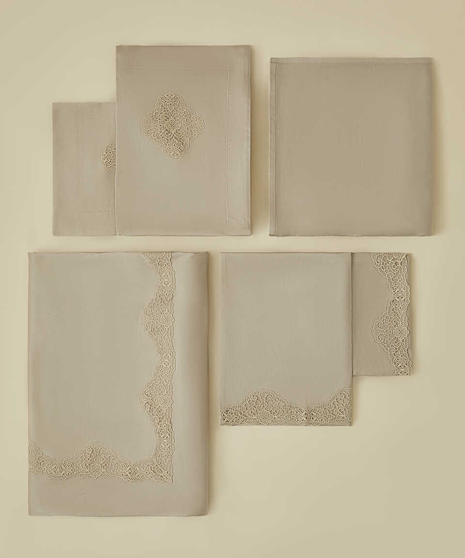 100% قطن / قطن، ساتان / ساتان طقم غطاء لحاف مزدوج / طقم غطاء لحاف مزدوج 1 × غطاء لحاف - 200 × 220 سم 1 × ملاءة سرير - 275 × 275 سم 2 × غطاء وسادة / غطاء وسادة نوم - 50 × 70 سم 2 × غطاء وسادة ظهر - 50 × 70 سم حجر أبيض