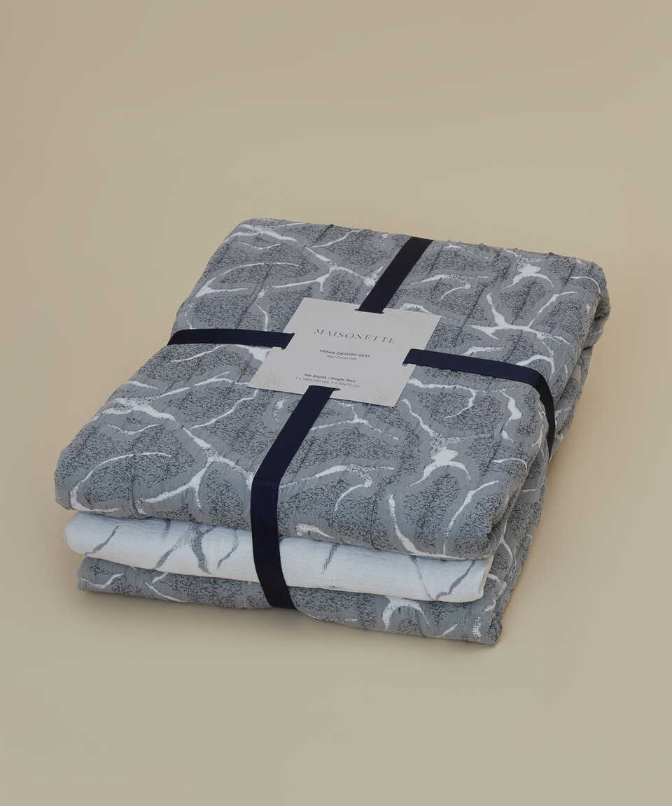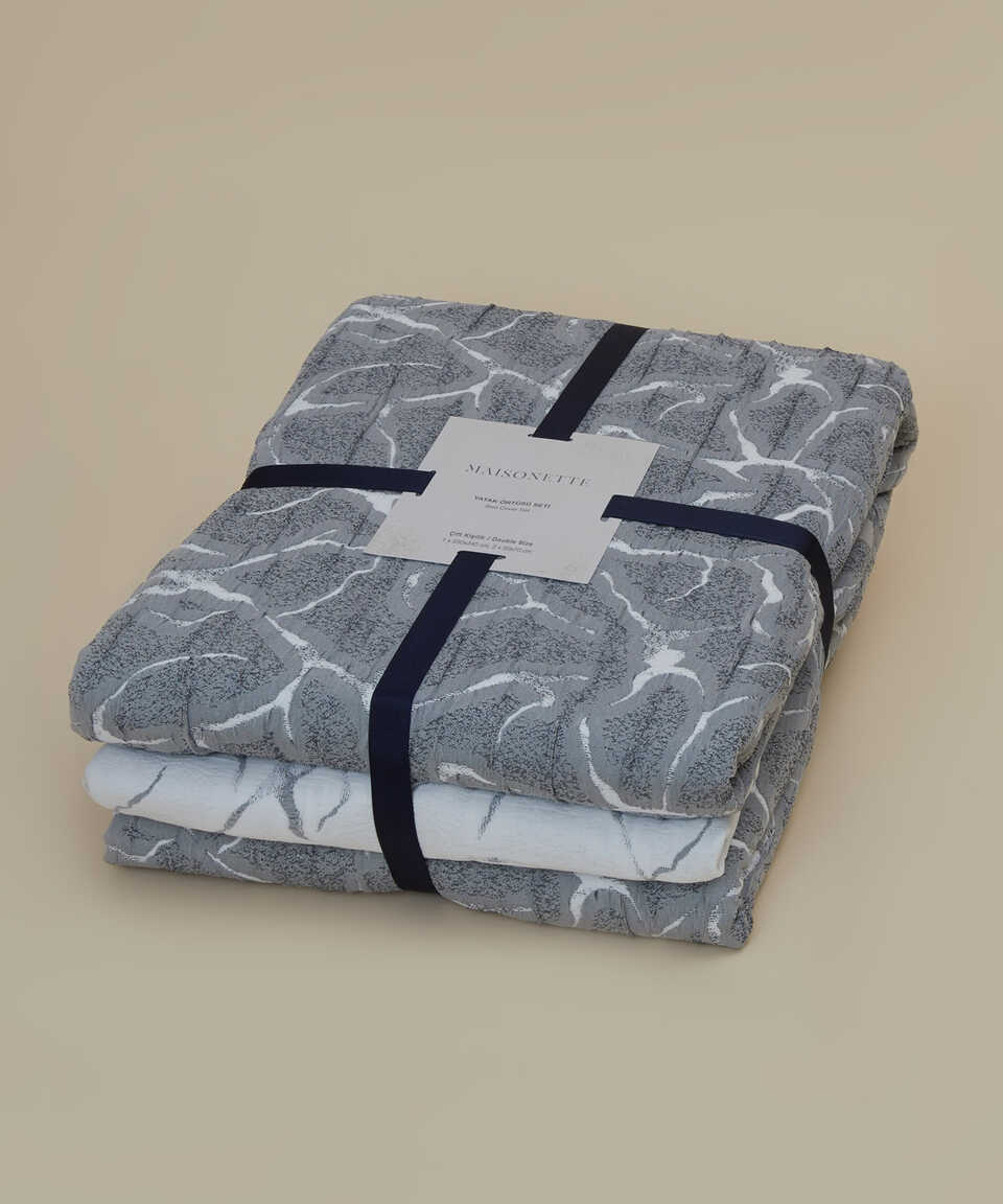 طقم أغطية سرير جاكار مزدوج الجوانب باللون الرمادي الداكن