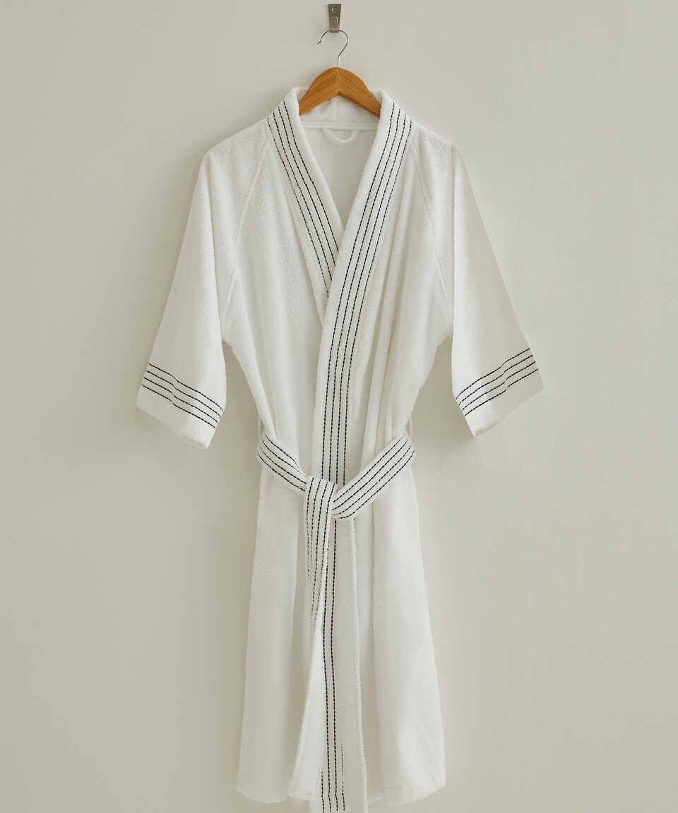 بفضل جودة خيوط Micro Touch المطورة خصيصًا، لا يفقد نعومته بعد الغسيل. ونظرًا لمحتواه من القطن، فإنه يتمتع بقدرة امتصاص عالية للماء. وبفضل قصته الخاصة على الذراع، فهو مريح للغاية في الاستخدام. وبتفاصيله الأنيقة والبسيطة للتطريز، فهو منتج أنيق لن يخرج أبدًا عن الموضة. يمكنك دمج المنتج مع منشفة Subtle Stitch مقاس 50 × 100 سم في فئة المناشف. يمكنك فحص مجموعة أغطية اللحاف لدينا المصنوعة بنفس تفاصيل التطريز في فئة غرف النوم. بفضل جودة خيوط Micro Touch المطورة خصيصًا، لا يفقد نعومته بعد الغسيل. ونظرًا لمحتواه من القطن، فإنه يتمتع بقدرة امتصاص عالية للماء. إنه مريح للغاية في الاستخدام بفضل قصته الخاصة على الذراع. إنه منتج أنيق لن يخرج أبدًا عن الموضة بتفاصيله الأنيقة والبسيطة للتطريز. يمكنك دمج المنتج مع منشفة Subtle Stitch مقاس 50 × 100 سم في فئة المناشف. يمكنك فحص مجموعة أغطية اللحاف لدينا المصنوعة بنفس تفاصيل التطريز في فئة غرف النوم. محتوى المنتج؛ قطن ١٠٠٪ / قطن مطرز / مطرز الوزن / الوزن؛ ٣٦٠ جم/م² خيارات المقاسات / المقاسات؛ موديل S/M، L/XL؛ رداء حمام كيمونو / رداء حمام كيمونو خيارات الألوان / الألوان؛ أبيض - كحلي / أبيض - أزرق كحلي أبيض - حجري / أبيض - حجري أبيض - رمادي / أبيض - رمادي