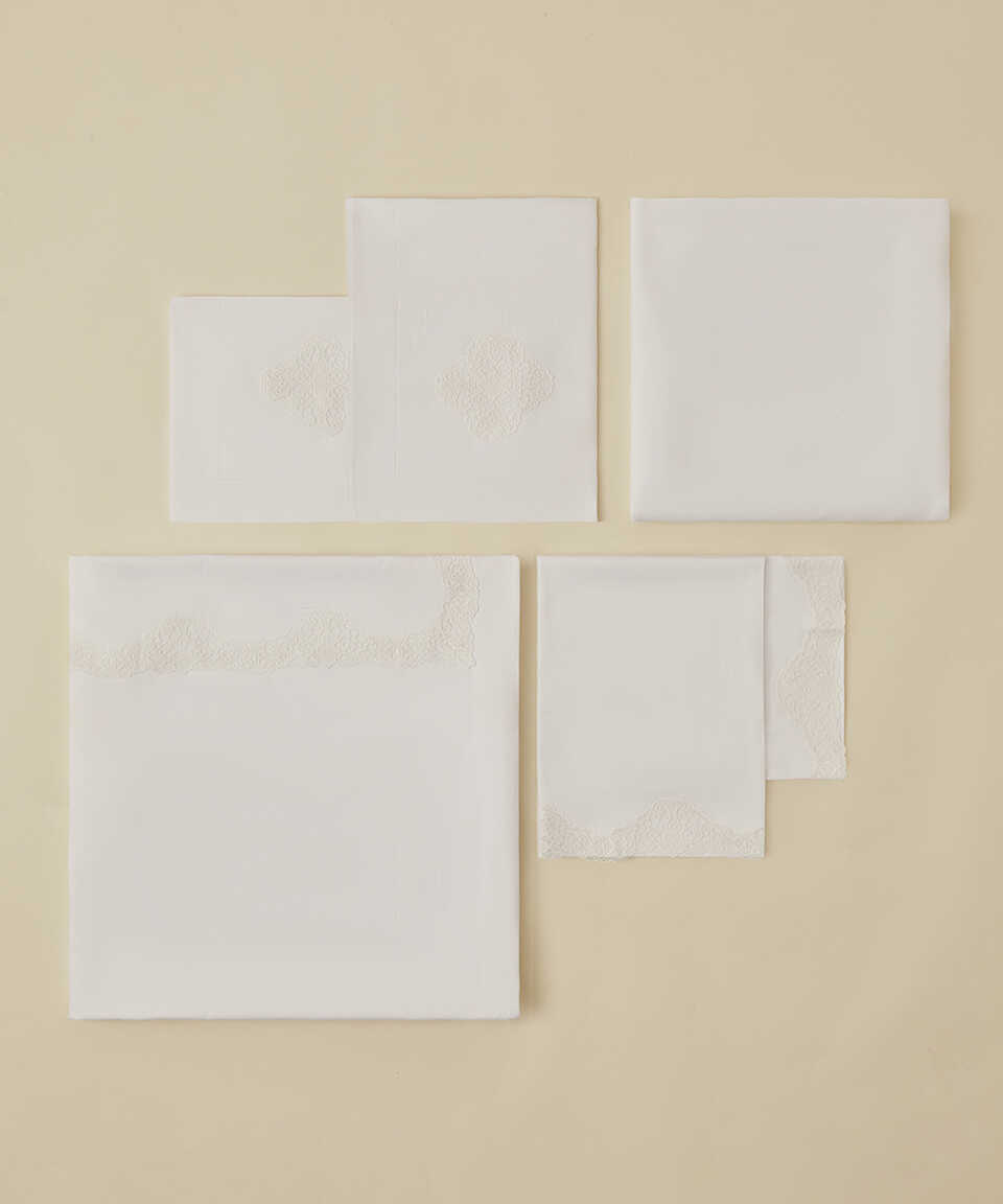 100% Cotton / Cotton, Satin / SatinDouble Duvet Cover Set / Double Duvet Cover Set 1 x Duvet Cover - 200 x 220 cm 1 x Bed Sheet - 275 x 275 cm 2 x Pillow Cases / Sleeping Pillow Case - 50 x 70 cm 2 x Sham Cases / Back Pillow Case - 50 x 70 cm White Stone