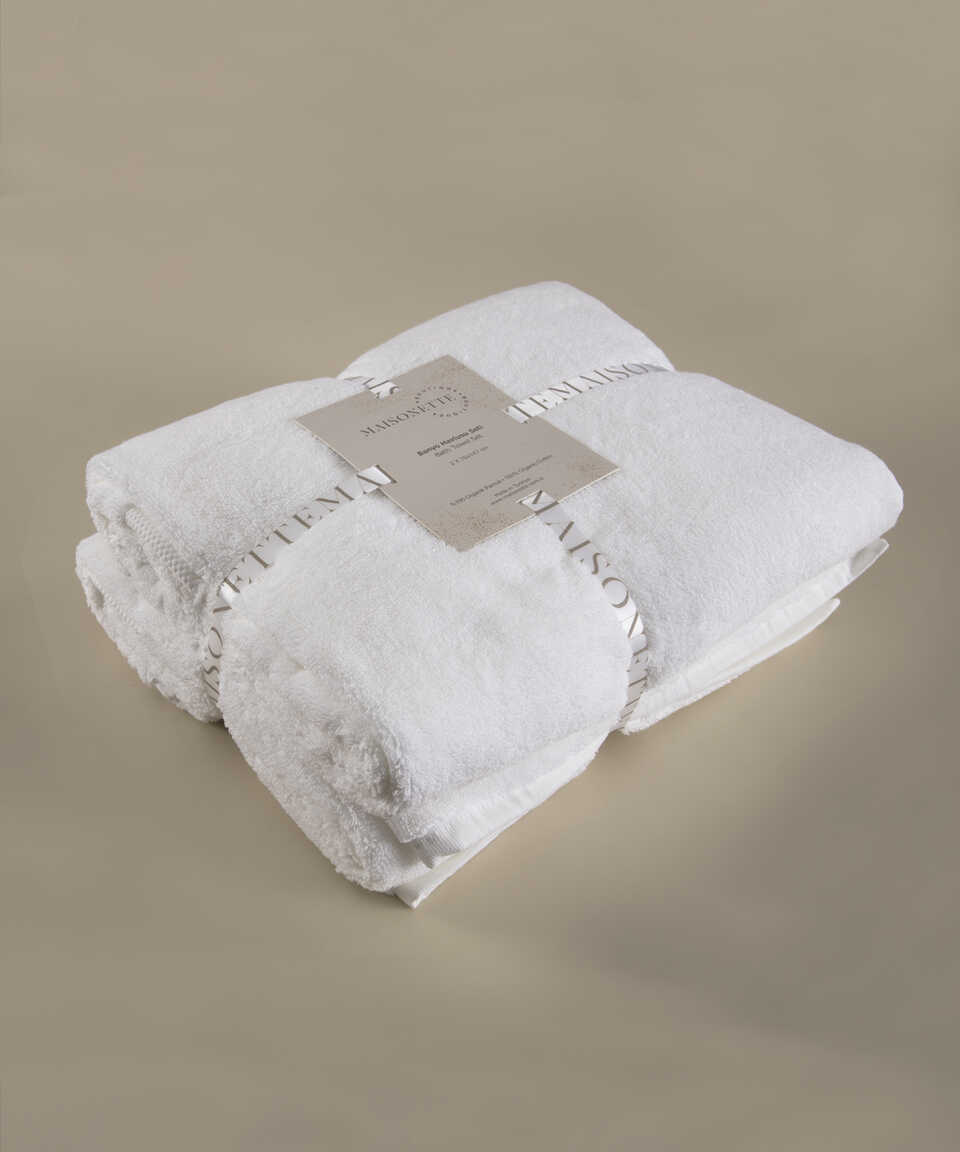 100% Organic Cotton - 100% Organic CottonBath - 76x147 cm - 700 gsmBS - 91x178 cm - 700 gsmHand - 51x76 cm - 700 gsmWash - 33x33 cm - 700 gsmBath mat - 51x76 cm - 1350 gsmVanity Bath mat - 61x112 cm - 1350 gsmELEGANCE 2-PIECE BATHROOM SET - Consists of 2 X 76x147 products.