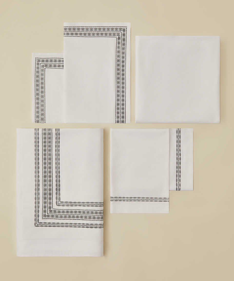 100% Cotton / Cotton, Satin / SatinEmbroidered Double Duvet Cover Set / Double Embroidered Duvet Cover Set 1 x Duvet Cover - 200 x 220 cm 1 x Bed Sheet - 275 x 275 cm 2 x Pillow Cases / Sleeping Pillow Case - 50 x 70 cm 2 x Sham Cases / Back Pillow Case - 50 x 70 cm White / Stone - White / Beige White / Grey - White / Grey