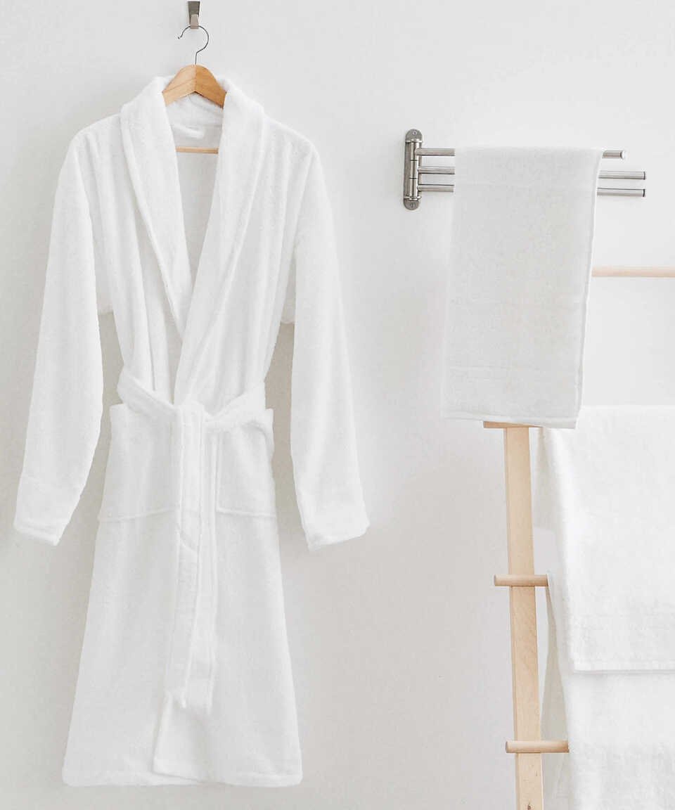 TOWEL / TOWEL100% Cotton500 g/m² Weight30 x 50 cm I 50 x 90 cm I 70 x 140 cm I 100 x 150 cmWhite / WhiteBATH MAT / MAT100 % Cotton750 g/m² Weight50x70 cmWhite Cotton400 g/m² WeightS/M – L/XL Shawl Collar, S/M – L/XL KimonoWhite / White