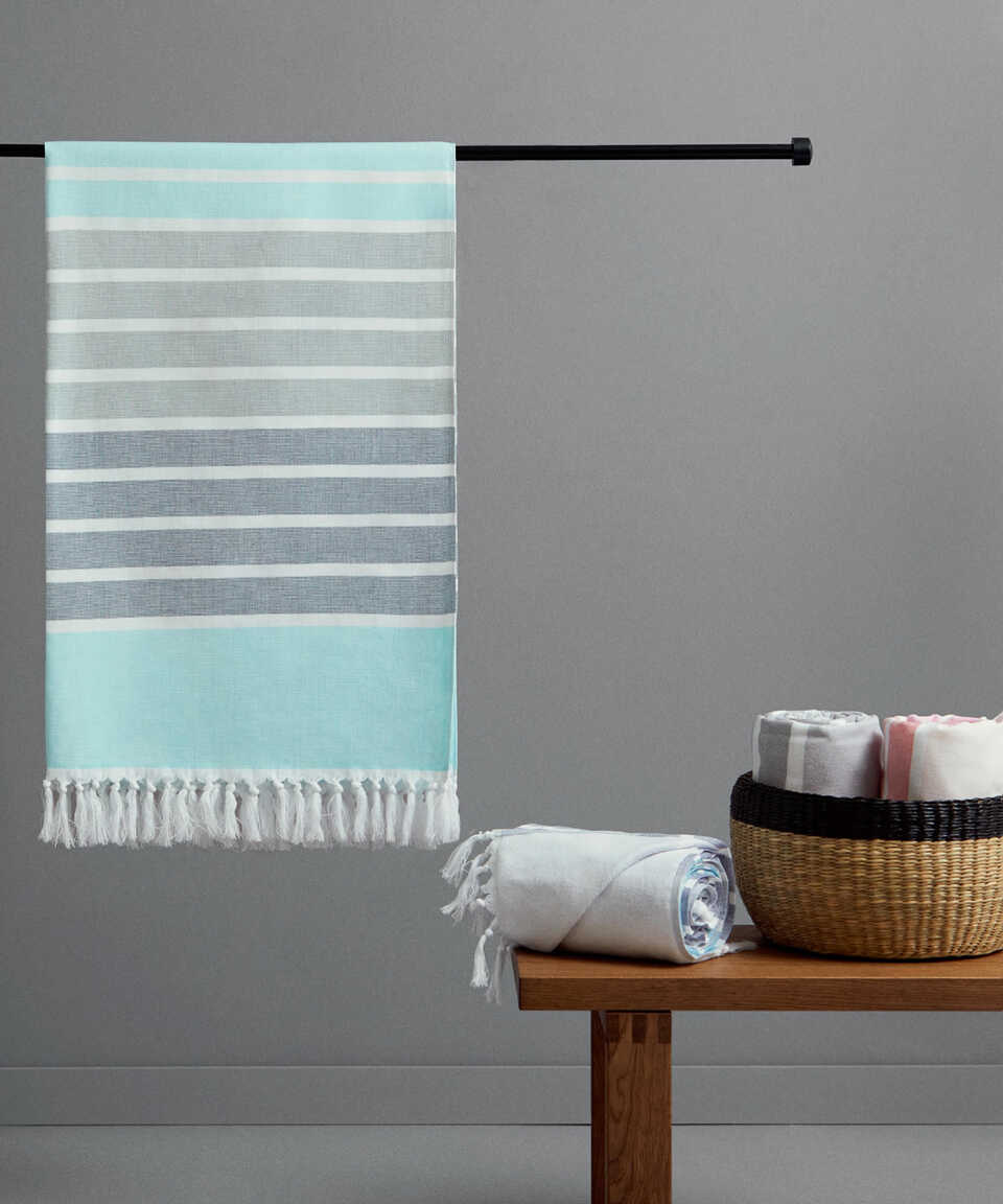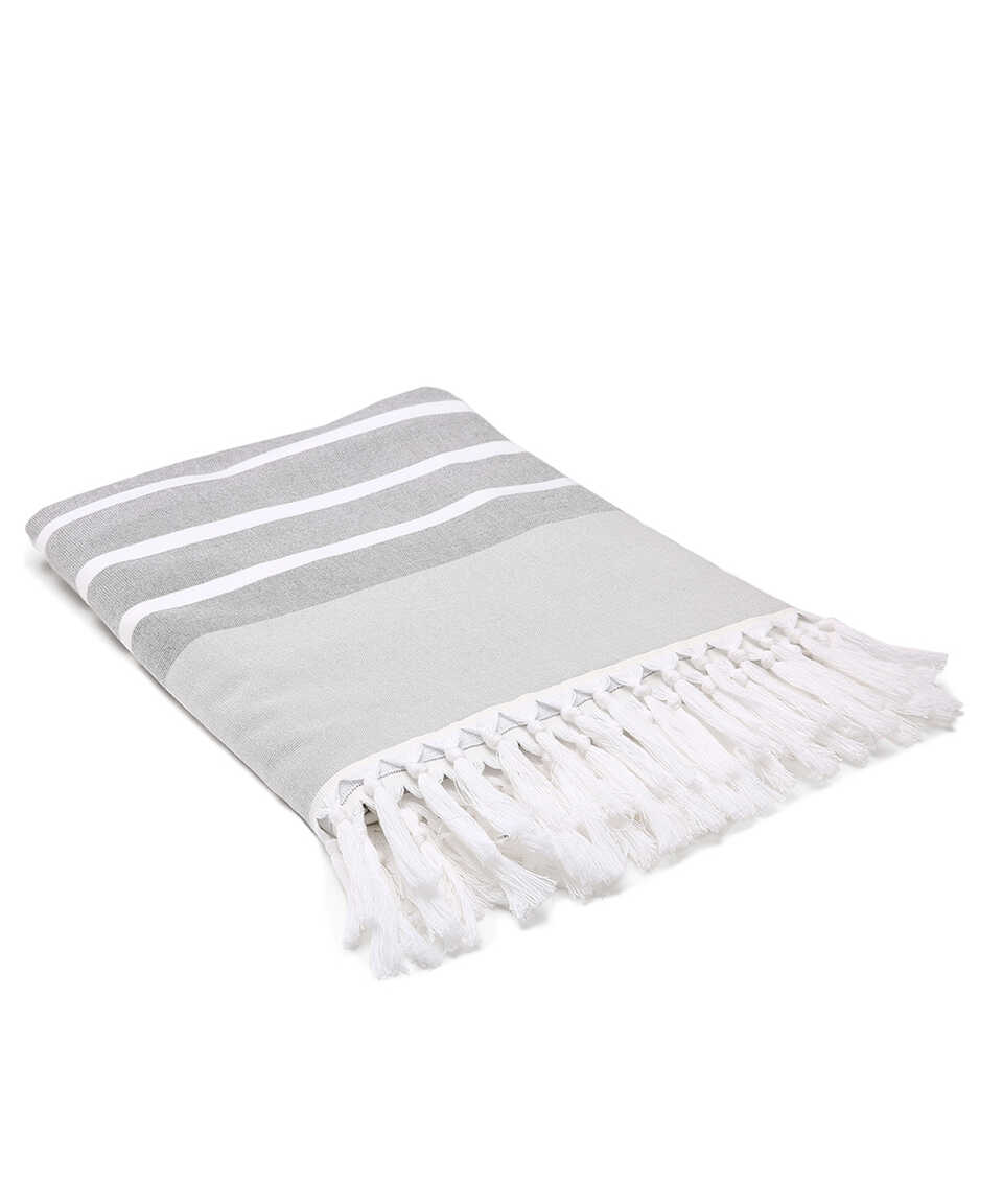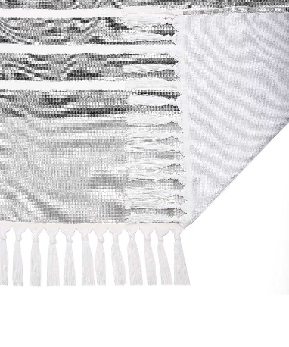 100% Cotton / CottonFlat Weave Face and Full Terry Loop Back Beach Towel with Knotted FringeFront Face Fabric and Back Face Loop Tied Tassel Beach Towel400 g/m² Weight100x178 cmGreen / GreenPink / PinkBlue / BlueGrey / Gray