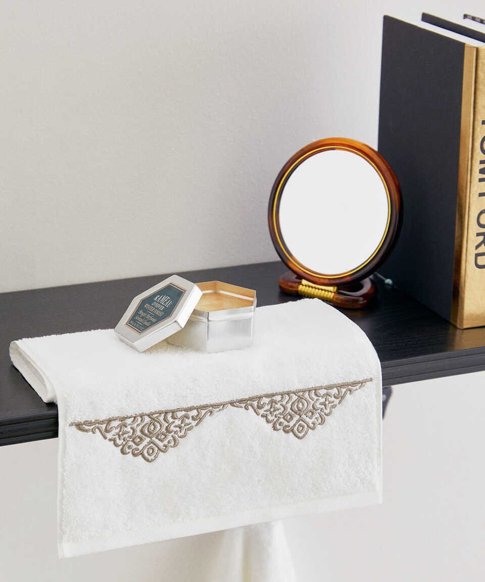 100% Cotton / CottonEmbroidered / Embroidered550 g/m² Weight / Weight30 x 50 cm I 50 x 100 cm I 70 x 140 cmWhite / Black - White / BlackWhite / Sand - White / Beige