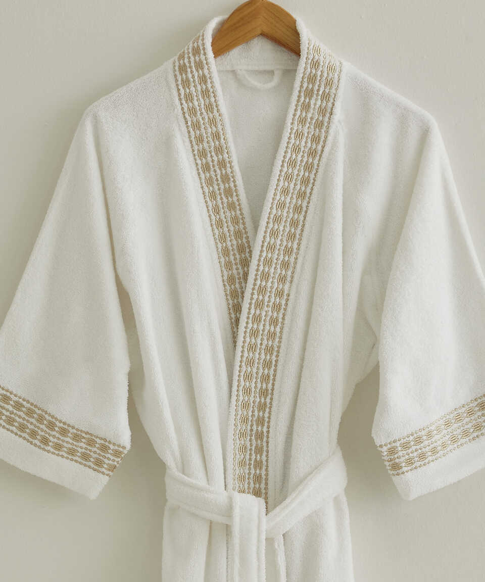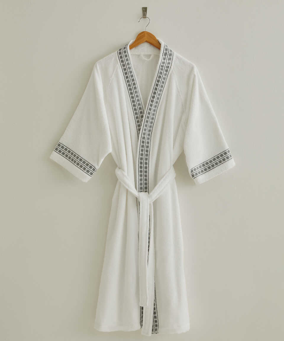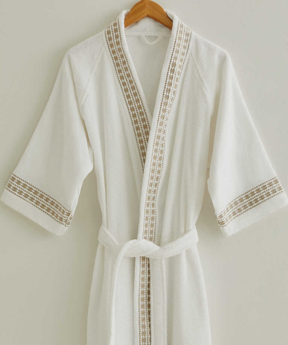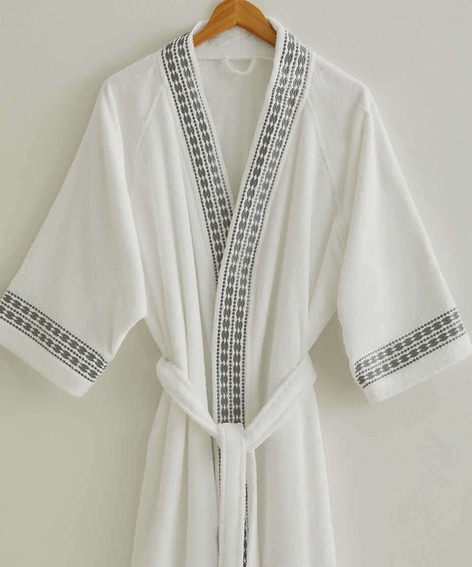 Özel geliştirilmiş Micro Touch iplik kalitesi sayesinde yıkama sonrasında yumuşaklığını kaybetmez. Pamuk içeriğinden dolayı su emiciliği yüksektir. Özel kol kesimi sayesinde kullanımı oldukça rahattır. Zarif ve klasik modern nakış detaylarıyla da modası hiç geçmeyecek şıklıkta bir ürün. Havlu kategorisinde yer alan Flossy 50x100 cm havlu ile ürünü kombinleyebilirsiniz. Aynı nakış detayı ile üretilmiş nevresim setimizi yatak odası kategorisinde inceleyebilirsiniz.