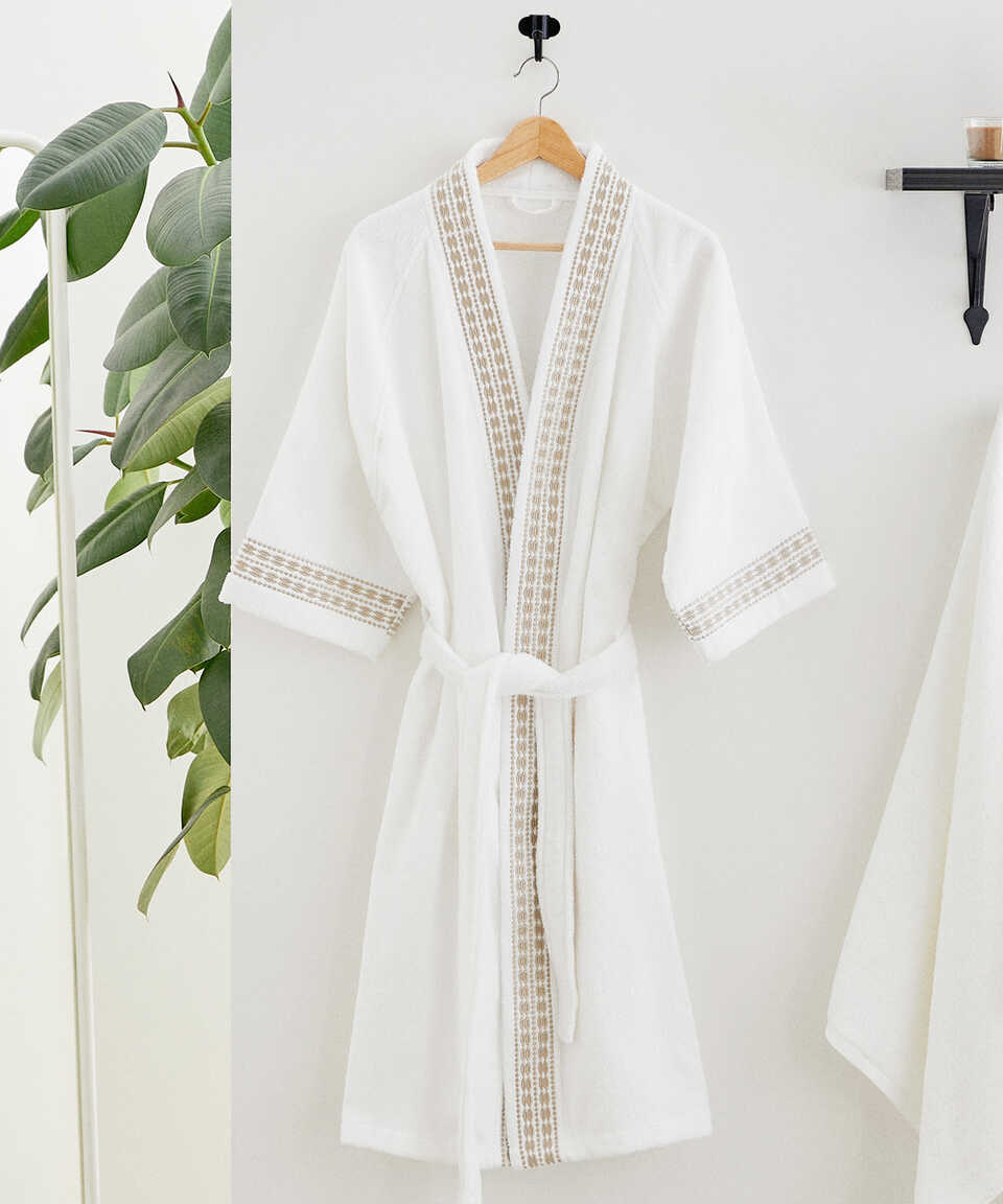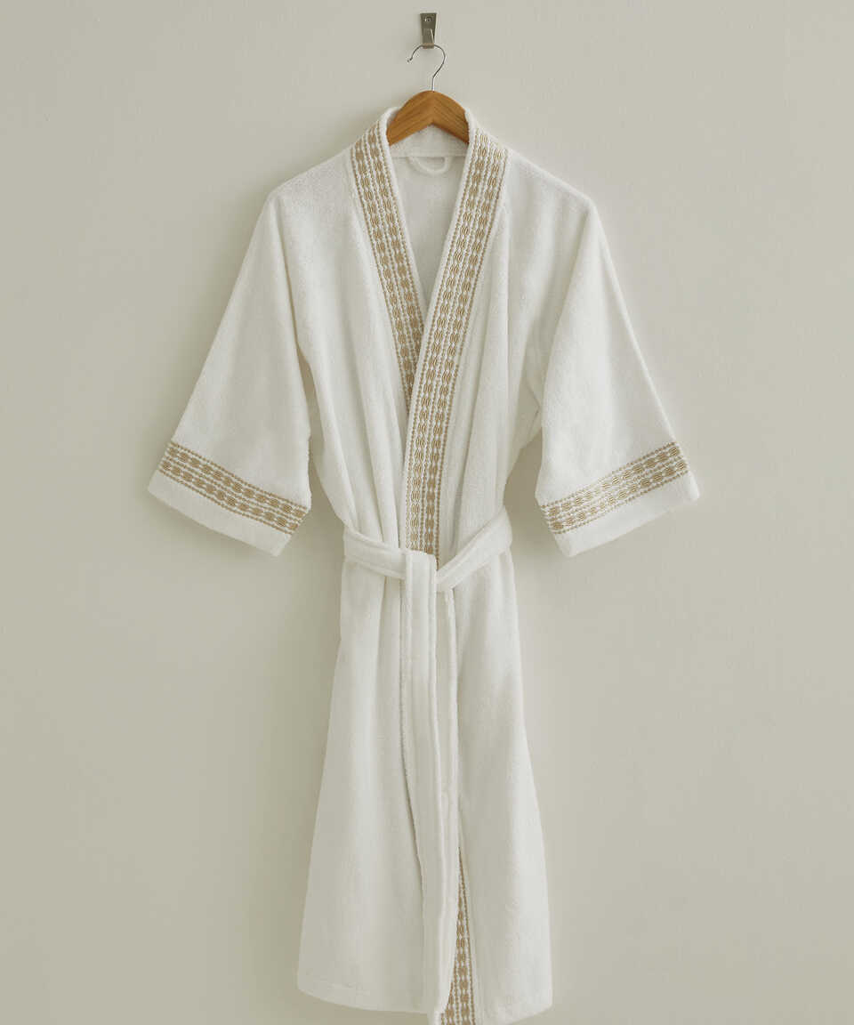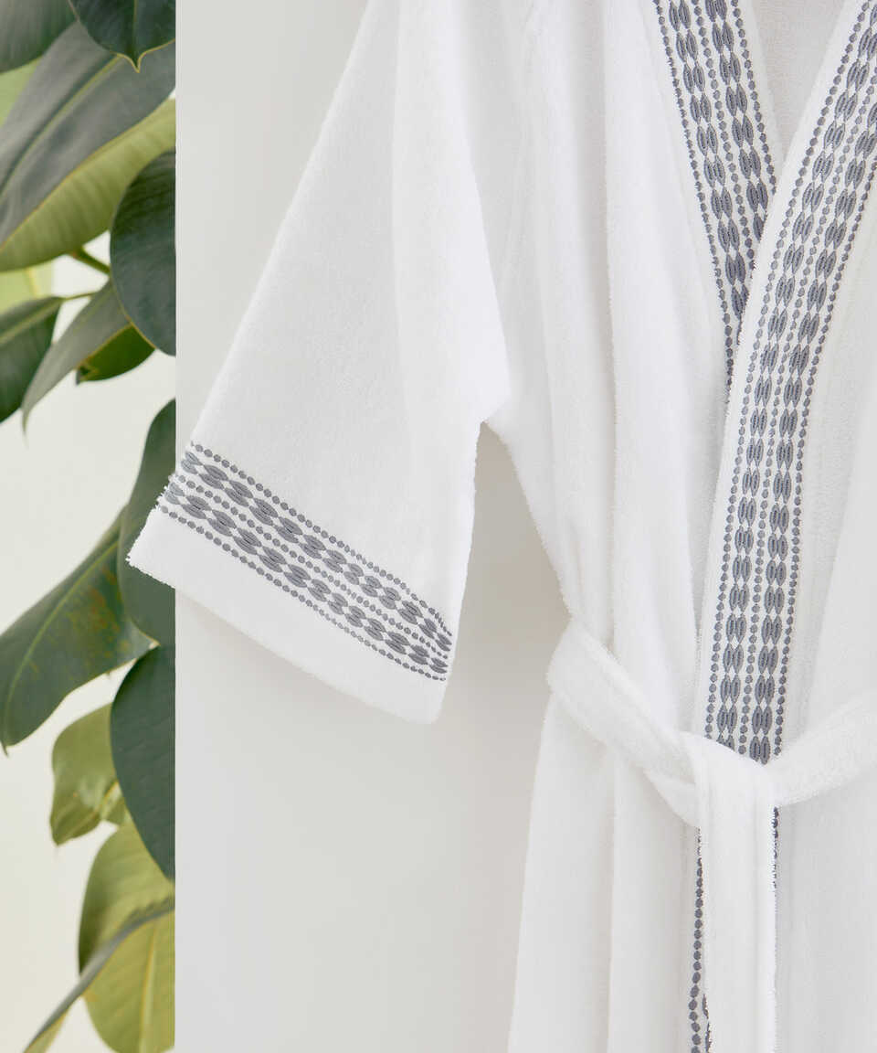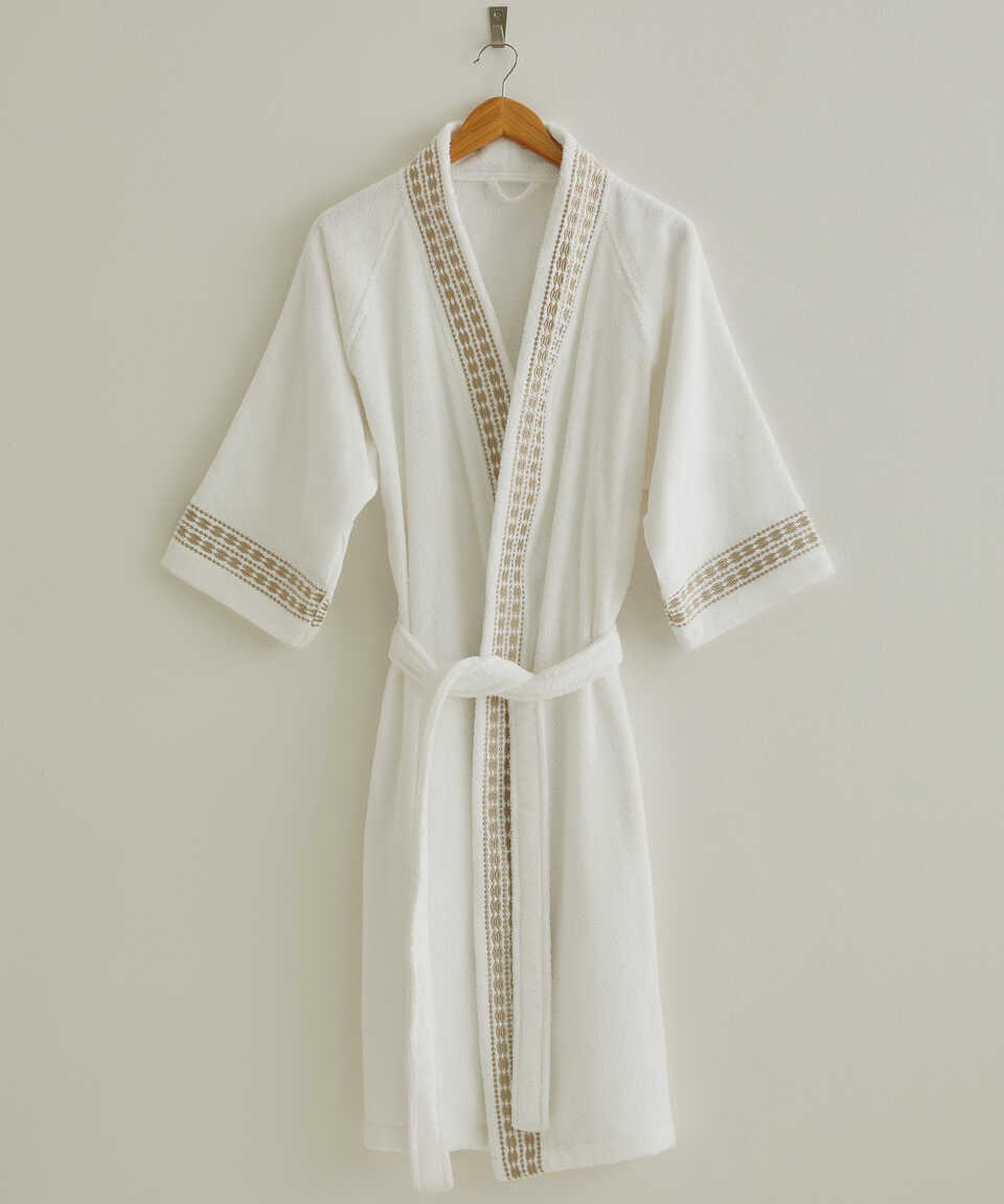 Özel geliştirilmiş Micro Touch iplik kalitesi sayesinde yıkama sonrasında yumuşaklığını kaybetmez. Pamuk içeriğinden dolayı su emiciliği yüksektir. Özel kol kesimi sayesinde kullanımı oldukça rahattır. Zarif ve klasik modern nakış detaylarıyla da modası hiç geçmeyecek şıklıkta bir ürün. Havlu kategorisinde yer alan Flossy 50x100 cm havlu ile ürünü kombinleyebilirsiniz. Aynı nakış detayı ile üretilmiş nevresim setimizi yatak odası kategorisinde inceleyebilirsiniz.