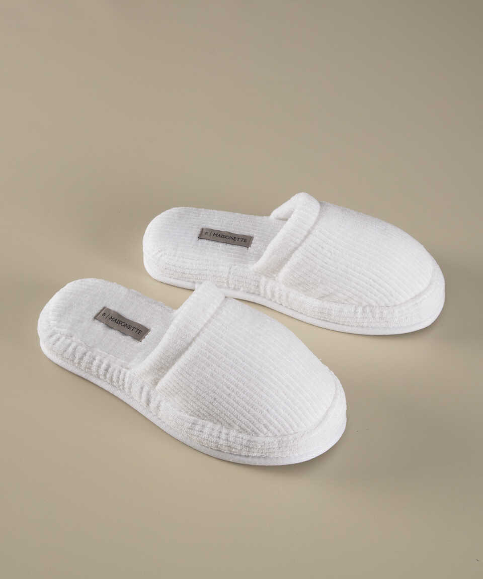 Это тапочки к нашему халату модели Arya. Размеры: 37, 40 и 42. Качество ткани такое же, как и у халата, — 100% хлопок.