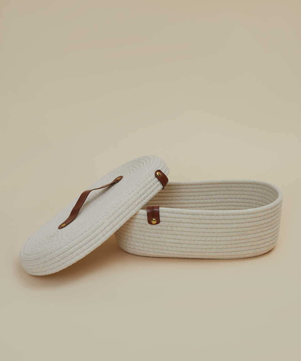 КОРЗИНА ЦВЕТНАЯ – 16x30x9 см – КРЫШКА КРЕМОВОГО ЦВЕТА Описание продукта: 70% полиэстер, 30% хлопок, 16x30x9 см
