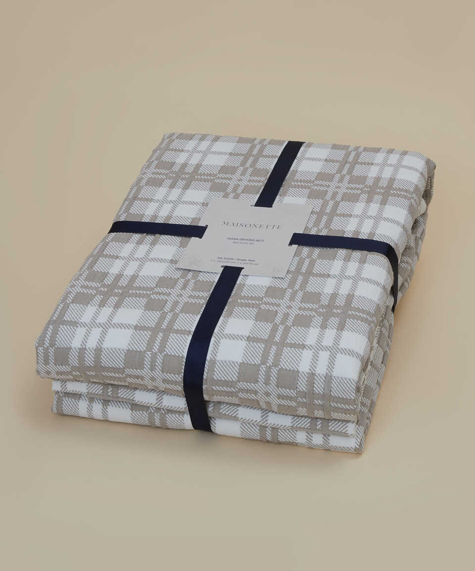 Комплект покрывала с жаккардовым клетчатым узором бежевого цвета