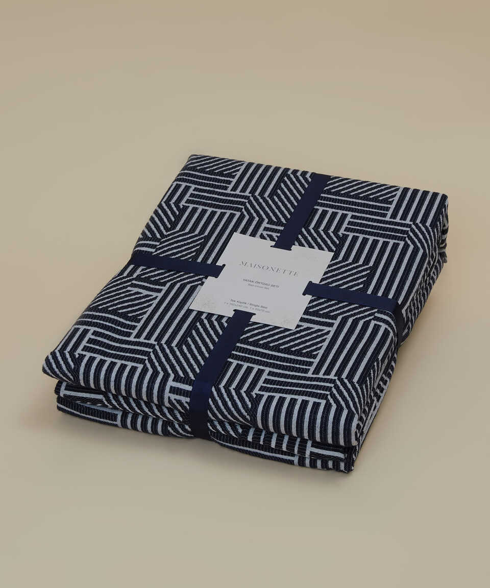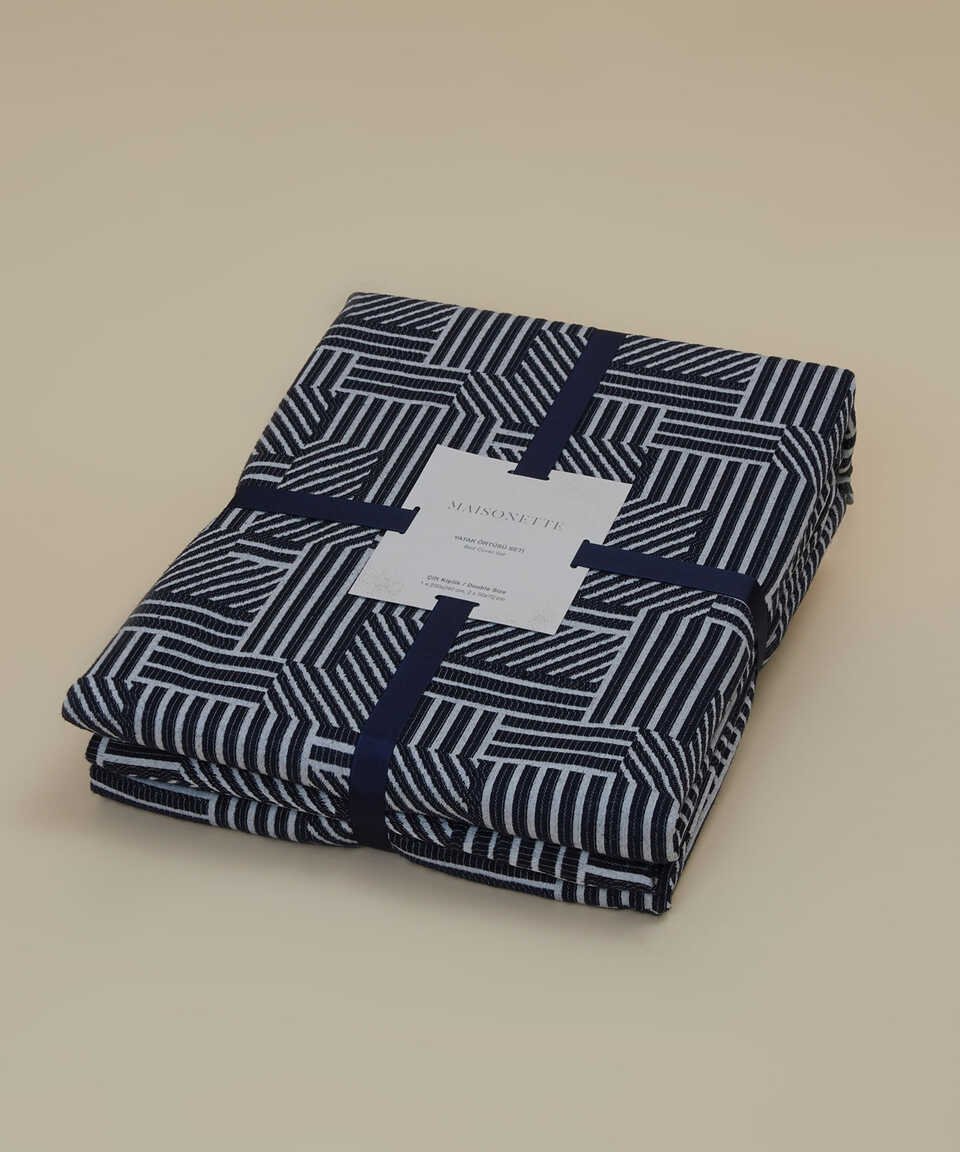 Комплект жаккардового покрывала с геометрическим узором Темно-синий