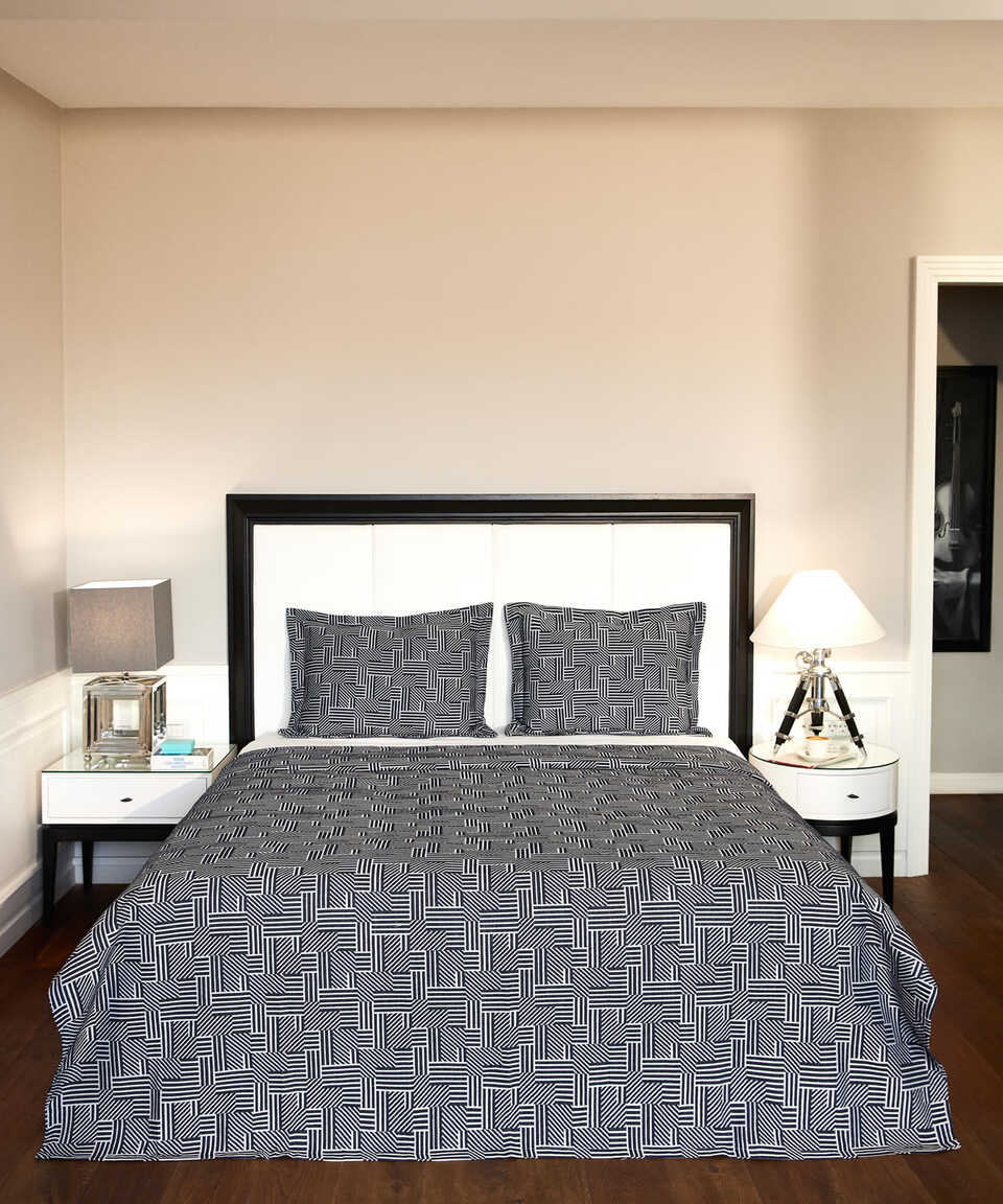 Жаккардовый геометрический узор. Жаккардовый геометрический узор. 53% хлопок / хлопок - 47% полиэстер. Двойной размер / двуспальный. 1 покрывало - 230 x 240 см. 2 наволочки - 50 x 70 см.