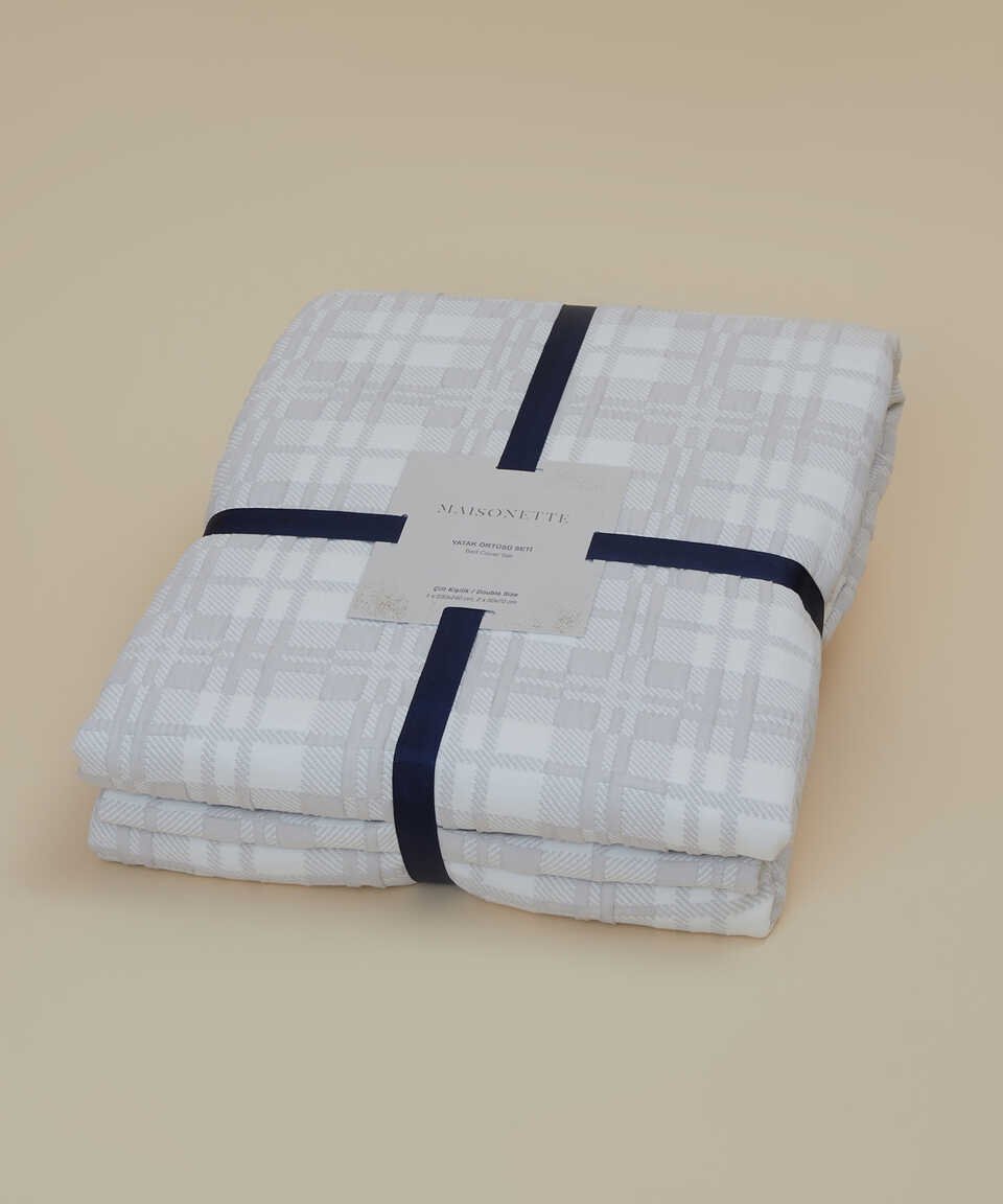 Комплект покрывала с жаккардовым клетчатым узором светло-серого цвета