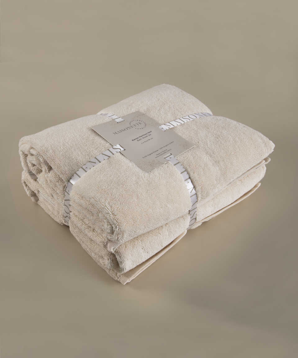 100% органический хлопок - 100% органический хлопок Для ванной - 76x147 см - 700 г/м² Для BS - 91x178 см - 700 г/м² Для рук - 51x76 см - 700 г/м² Для стирки - 33x33 см - 700 г/м² Коврик для ванной - 51x76 см - 1350 г/м² Коврик для ванной под туалетный столик - 61x112 см - 1350 г/м² БОЛЬШОЙ КОМПЛЕКТ ДЛЯ ВАННОЙ КОМНАТЫ ELEGANCE ИЗ 2 ПРЕДМЕТОВ - Он состоит из 2 предметов размером 91x178.