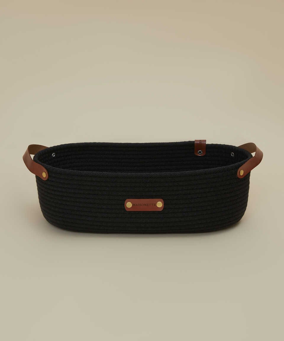 КОРЗИНА С КОЖАНОЙ РУЧКОЙ 19X37X12 см ЧЕРНАЯ