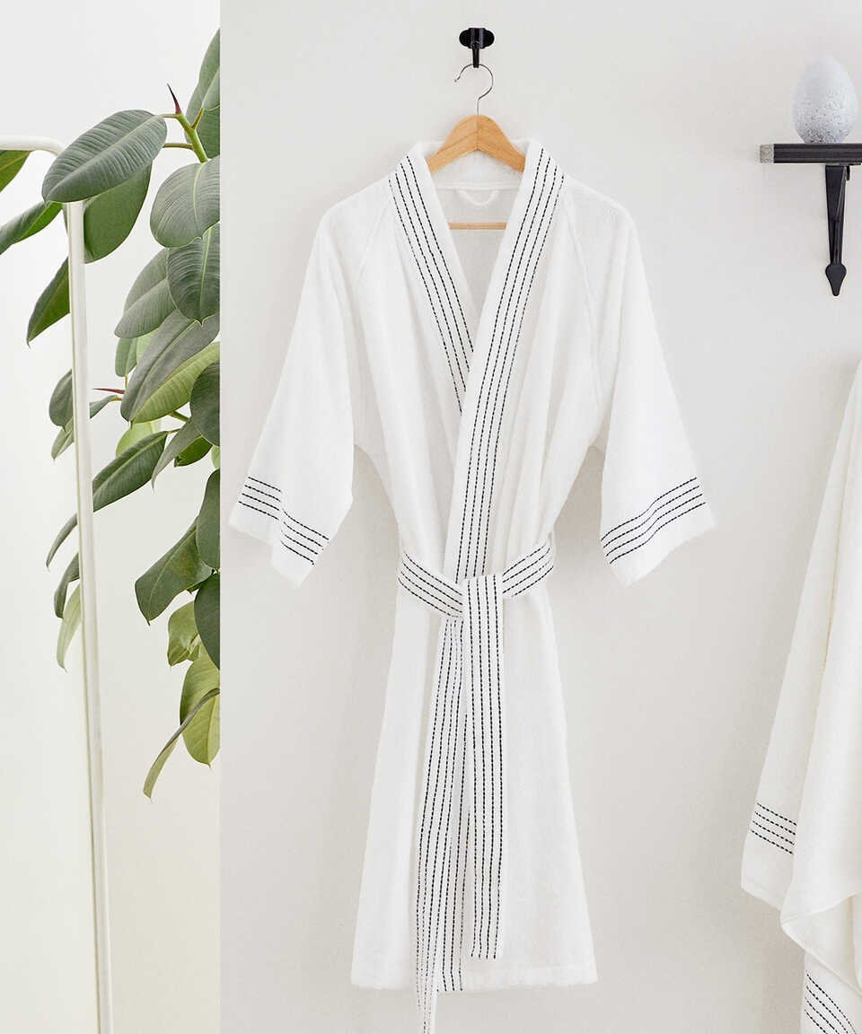 Благодаря специально разработанному качеству пряжи Micro Touch, он не теряет своей мягкости после стирки. Благодаря содержанию хлопка он обладает высокой впитываемостью воды. Благодаря особому крою рукава он очень удобен в использовании. Благодаря элегантным и минимальным деталям вышивки, это стильный продукт, который никогда не выйдет из моды. Вы можете комбинировать продукт с полотенцем Subtle Stitch 50x100 см в категории полотенец. Вы можете ознакомиться с нашим комплектом постельного белья с такой же вышивкой в категории «Спальня». Благодаря специально разработанному качеству пряжи Micro Touch он не теряет своей мягкости после стирки. Благодаря содержанию хлопка он обладает высокой впитываемостью воды. Он очень удобен в использовании благодаря особому крою рукава. Это элегантный продукт, который никогда не выйдет из моды благодаря элегантным и минимальным деталям вышивки. Вы можете комбинировать продукт с полотенцем Subtle Stitch 50x100 см в категории полотенец. Вы можете ознакомиться с нашим комплектом постельного белья с такой же вышивкой в категории «Спальня». Состав продукта; 100% Хлопок / ХлопокВышитый / С вышивкой Вес / Вес; 360 г/м² Варианты размеров / Размеры; Модель S/M, L/XL; Халат-кимоно / Халат-кимоно Варианты цветов / Цвета; Белый – тёмно-синий / Белый – тёмно-синий Белый – каменистый / Белый – каменистый Белый – серый / Белый – серый