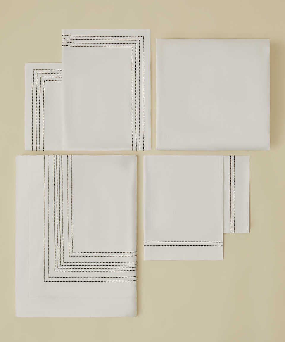 100% хлопок / хлопок, сатин / сатинВышитый комплект постельного белья с двумя пододеяльниками / Комплект постельного белья с двумя вышитыми пододеяльниками 1 пододеяльник - 200 x 220 см 1 простыня - 275 x 275 см 2 наволочки / наволочка для сна - 50 x 70 см 2 наволочки / наволочка для спинки - 50 x 70 см Белый / темно-синий - белый / темно-синий Белый / каменно-белый / каменно-белый / серый - белый / серый
