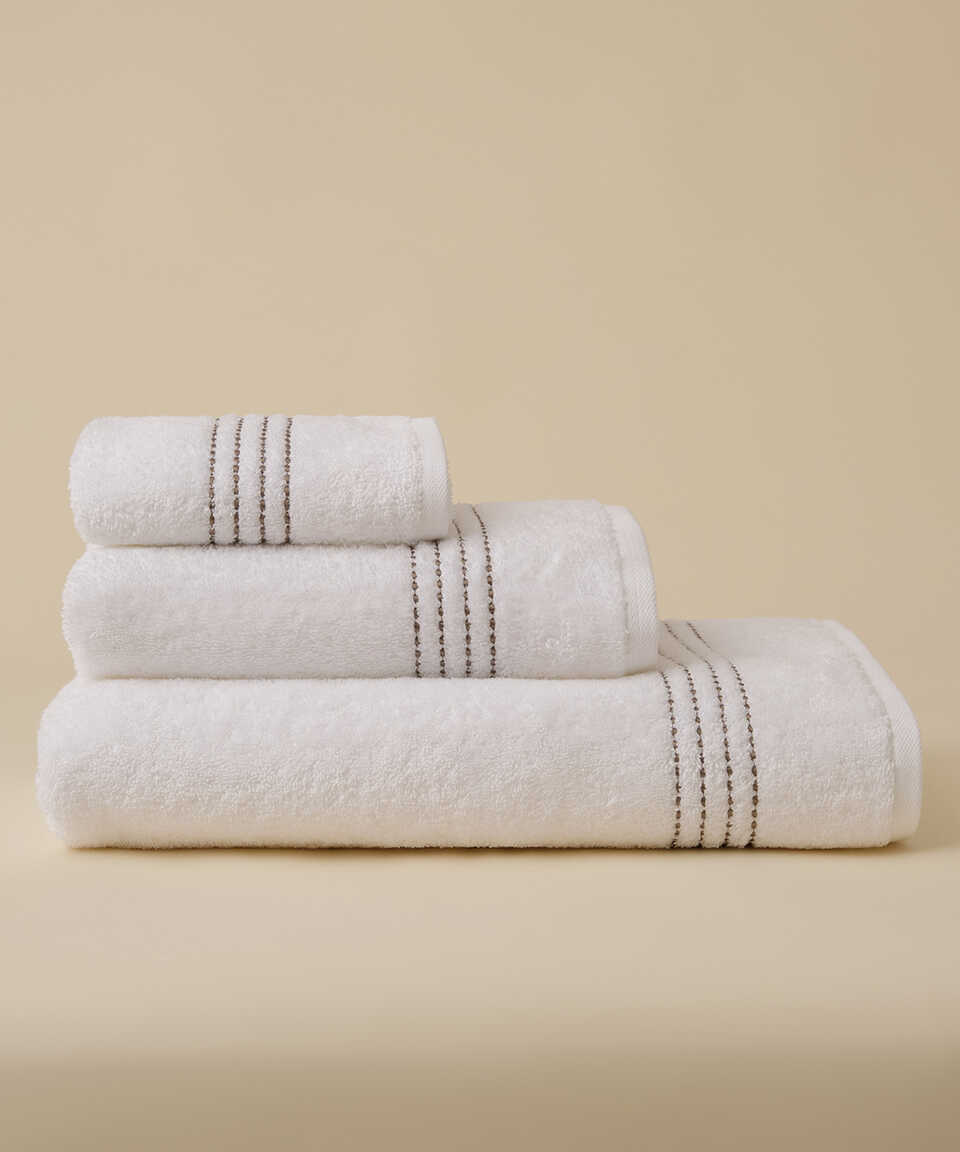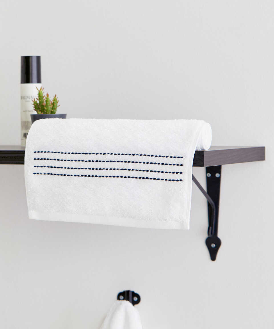 100% хлопок / CottonВышитый / Вышитый 550 г/м² Вес / Вес 30 x 50 см I 50 x 100 см I 70 x 140 см Белый – темно-синий / Белый - темно-синий Белый – камень / Белый - камень Белый – серый / Белый – серый