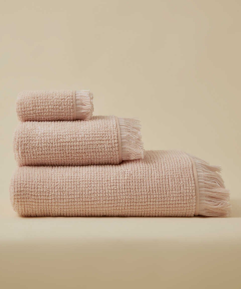 Махровое полотенце из 100% хлопка с бахромой из реснитчатой ткани / Полотенце с неразвязанной бахромой, плотность 650 г/м², размеры 30 x 50 см, 50 x 90 см, 76 x 152 см, цвет розовый / розовый, серый / серый