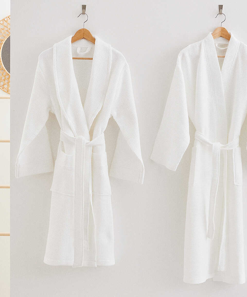 Soft, lightweight, absorbent and easy-drying waffle-construction bathrobe. It is a product that you can choose for daily use, to accompany you in your spa pleasure, as well as for your guests and as a gift. You can customize it with embroidery detail. You can combine your bathrobe with Sultan's Collection 50x100 cm towel in the towel category and Sultan's Collection 50x80 cm bath mat in the bath mat category, and Sultan's Collection standard size slippers in the slippers category.